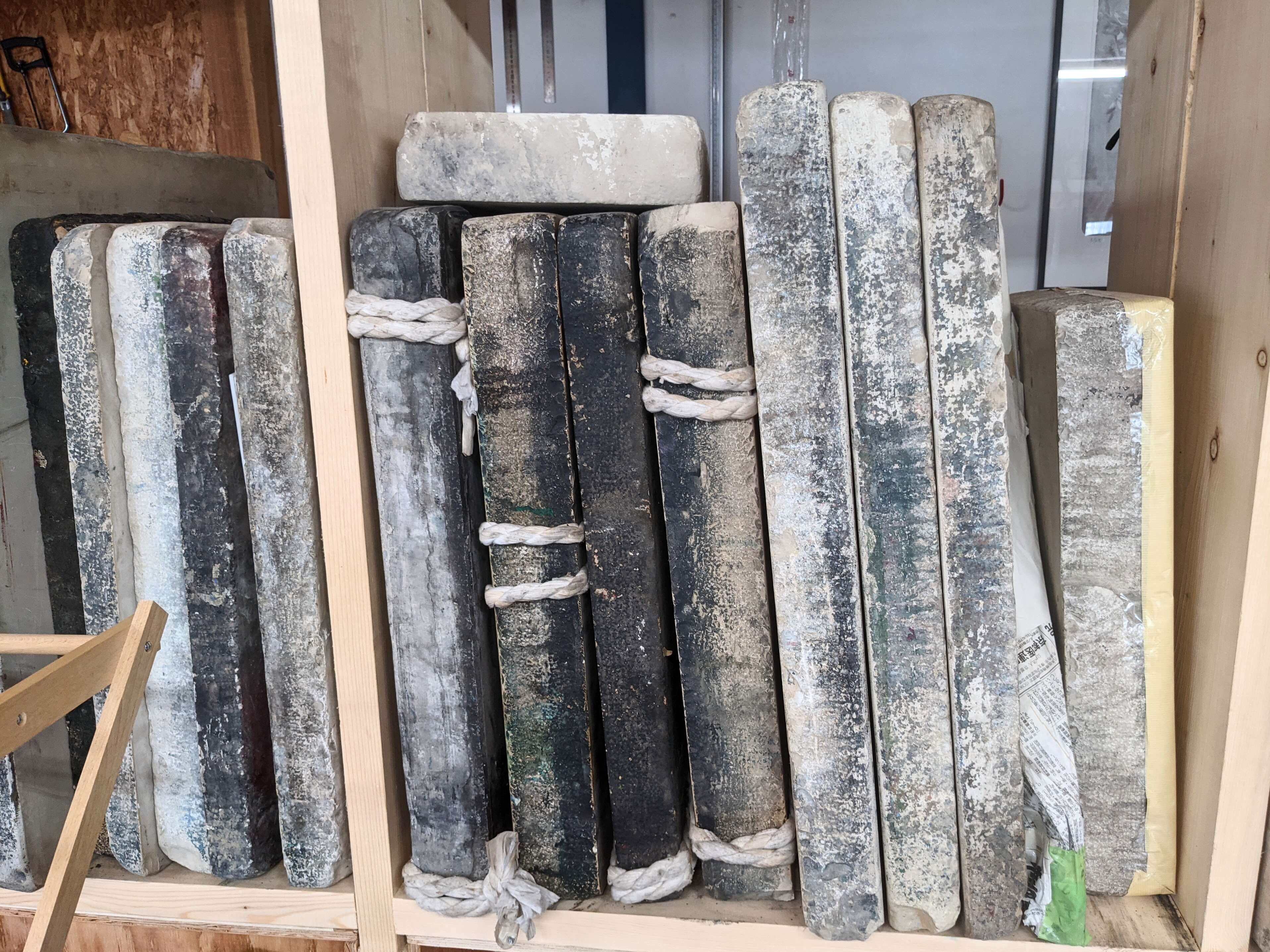 版に使う石はこんな感じ、重たいもので1つ 50kg以上。