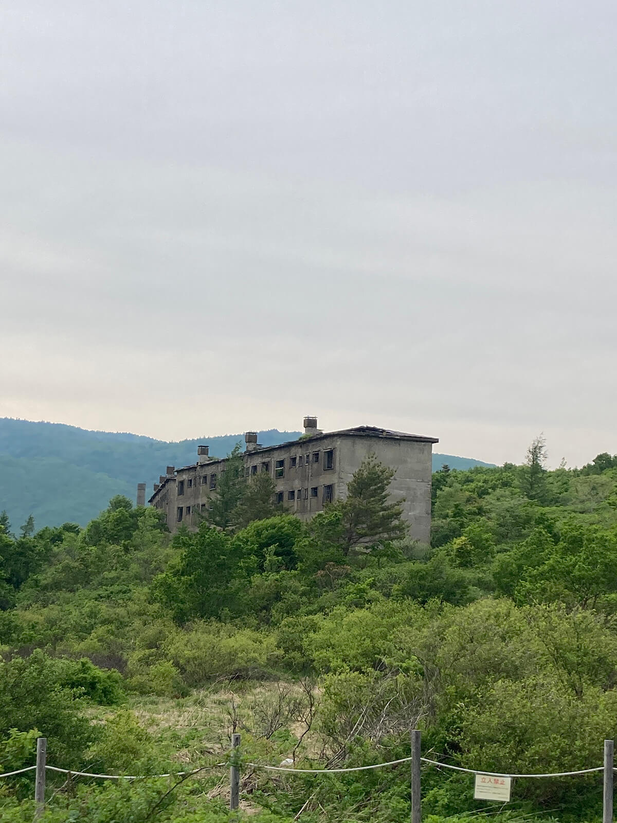 調べたら東洋一と言われた硫黄鉱山・松尾鉱山跡地でした。当時最先端の設備を備えた標高1000m付近にある鉱山都市は「雲上の楽園」と呼ばれ、最盛期の1960年には約1.3万人の人々が暮らした集合住宅のほか、病院、小・中・高校、映画館まであったそうです。