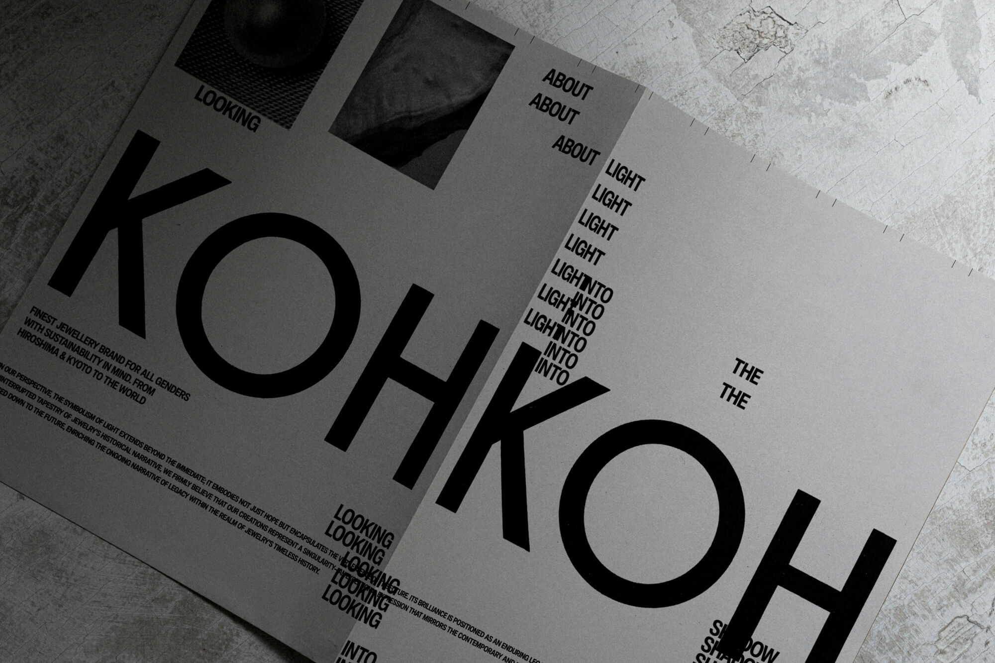 2023年に設立されたジュエリーブランド KOHKOH(コウコウ)のブランディング・ロゴデザイン・タブロイドデザイン。タブロイドはブランド初の展示であるNew Jewelry TOKYOで配布された。